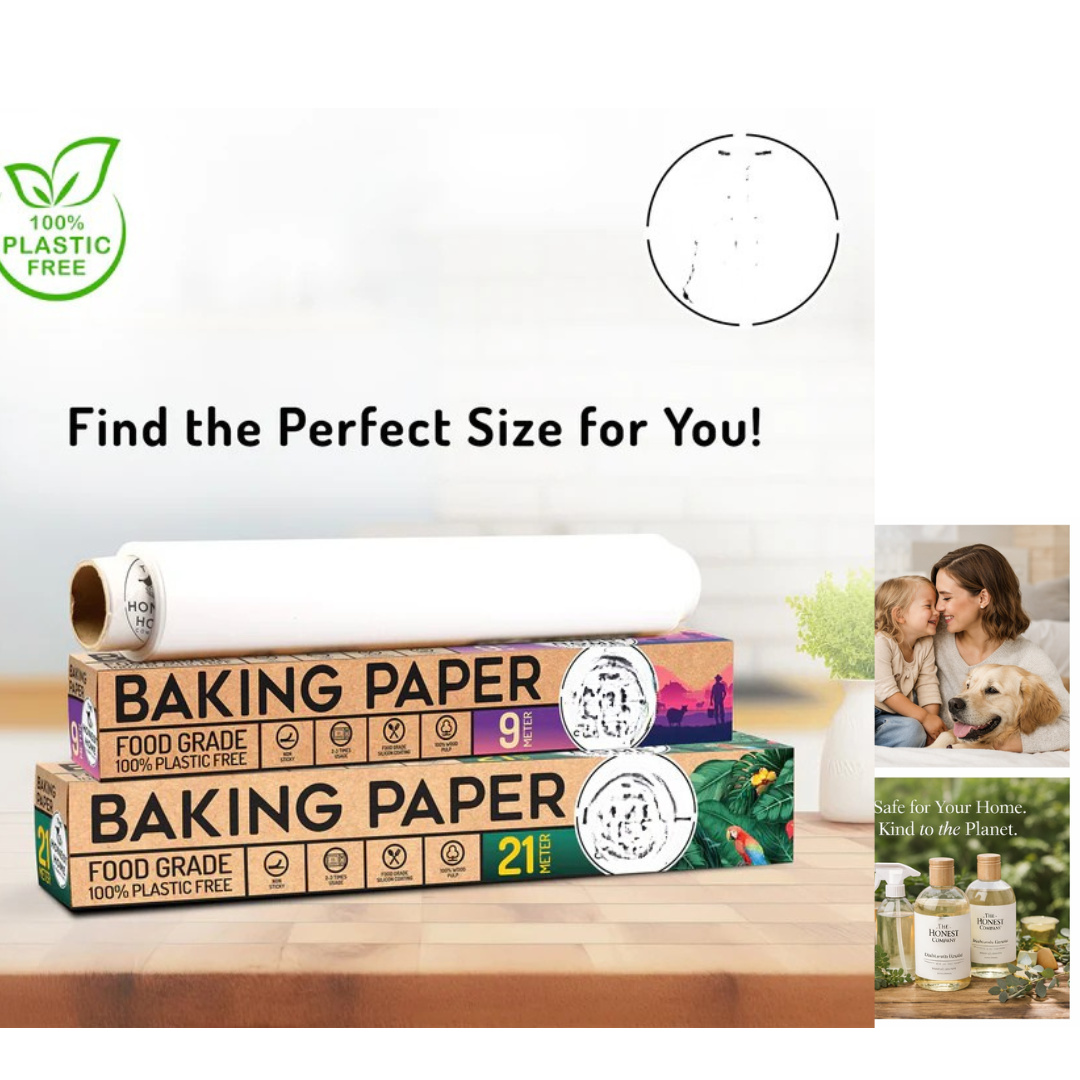 • Recyclable & Eco-Friendly: Our baking paper is fully recyclable, completing the cycle of sustainability.